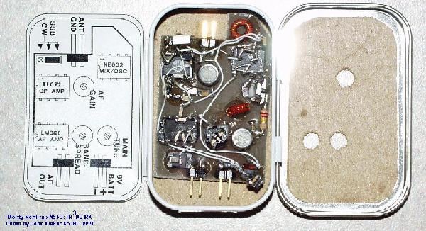 When my wife Carolyn showed up after an afternoon's shopping, sporting an Altoids "Tiny Box" (of mints), she was surprised at how I carried on about it. Upon seeing the 2-1/4 x 1-3/8 x 1/2" box (1.5 in3), I immediately began considering what I might build inside it. There have been numerous projects described for sardine cans and regular-sized Altoids boxes, but this box was a quarter the size of those. The project described herein is the end result of a month-long project to stuff something useful inside the teensy box.